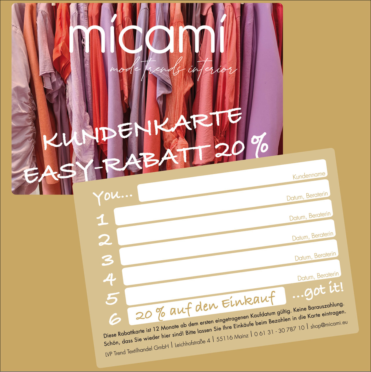 Die neue Easy-Rabattkarte – 5 mal einkaufen und 20% beim 6. Einkauf sparen.